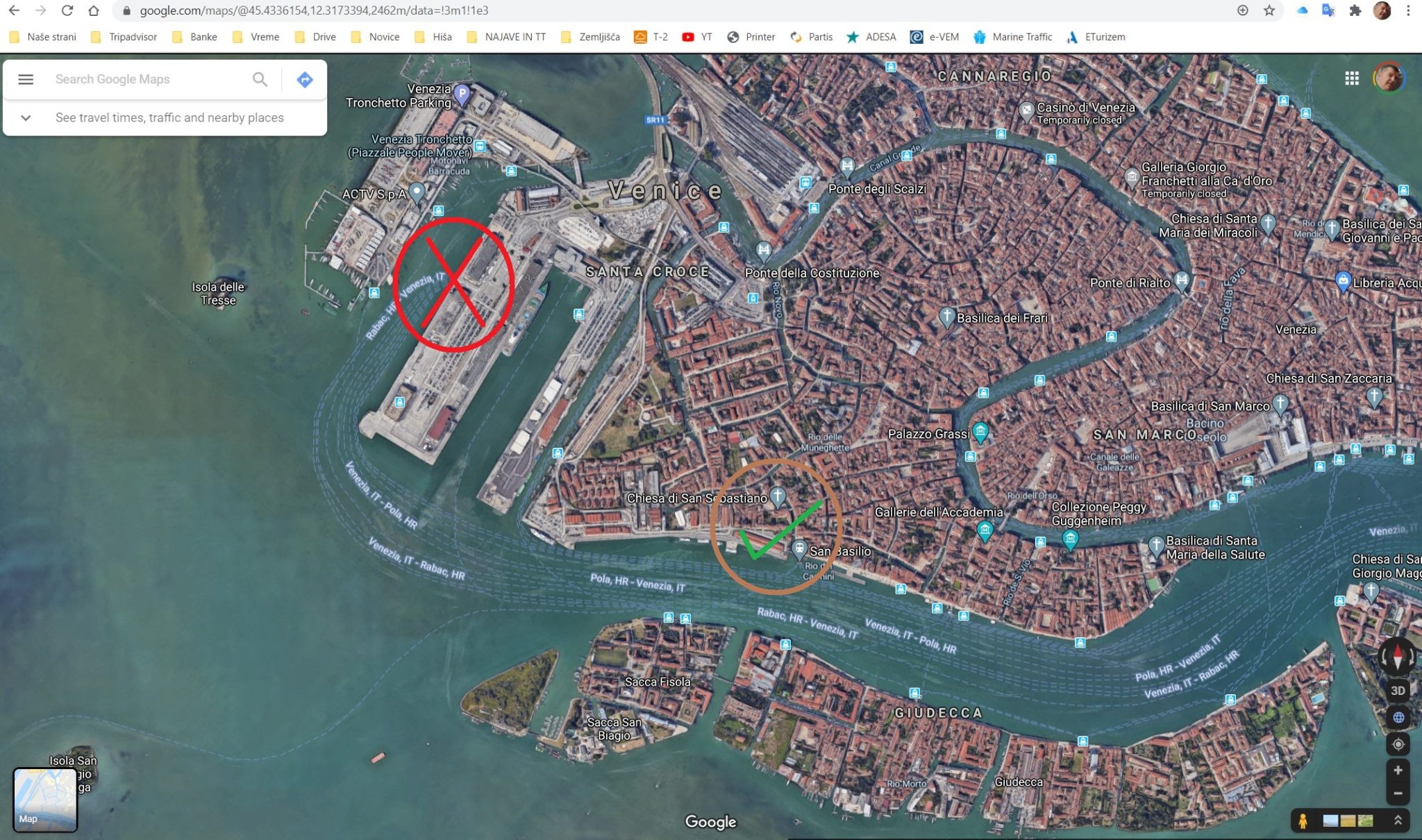 Auf den Karten zeigt Google den Punkt, von dem aus die Katamarane in Richtung Piran, Umag, Poreč, Rovinj und Pula fahren falsch an. Ungeachtet der Tatsache, dass wir bereits an Google geschrieben und sie auf diesen Fehler aufmerksam gemacht haben, besteht der Fehler weiter und Passagiere gehen oft verloren und verzögern Katamaran-Abfahrten. Leider bleibt Google taub gegenüber den Fakten, daher bitten wir alle Passagiere, unseren Empfehlungen zu folgen und nicht blind auf das zu hören, was auf anderen Seiten steht.