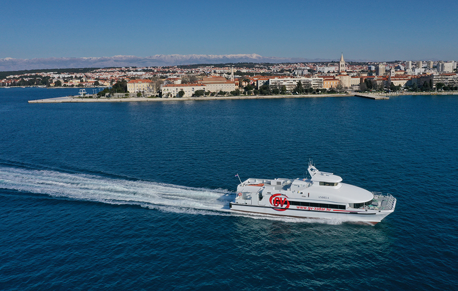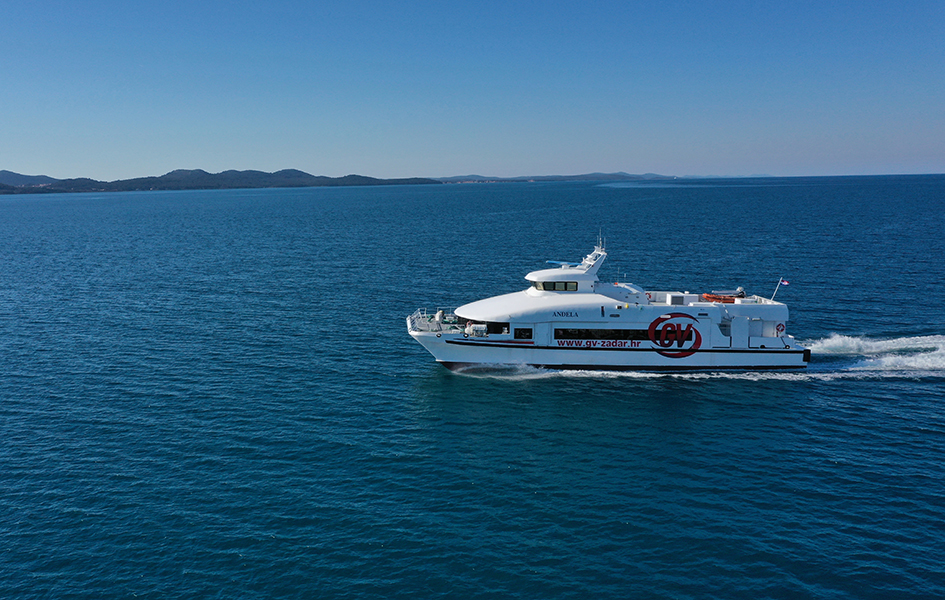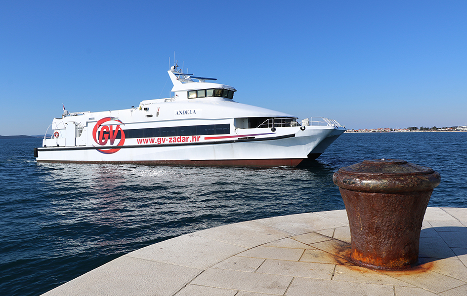 Der Katamaran Anđela ist die jüngste Akquisition unter den Katamaranen, die die Westküste Istriens mit Venedig verbinden. Es handelt sich um einen schnellen Katamaran, der eine Reisegeschwindigkeit von bis zu 33 Knoten erreicht. Bei dem Schiff handelt es sich um einen klassischen Katamaran, dessen Besonderheit jedoch darin besteht, dass der Rumpf aus Carbon besteht und extrem leicht und dadurch wirtschaftlich und ökologisch ist. Der Katamaran verfügt über einen großen Salon mit 250 Sitzplätzen und ein Außendeck, das den Passagieren während der langsamen Fahrt durch die Lagune (ca. 1 Stunde von der Hafeneinfahrt) zugänglich ist.